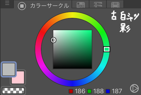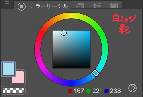 確かに透明感というか、空気感のあるイラストに仕上がってますね。カラーサークルで見ても魔王カゲ色は色相だけでなく、明度、彩度もしっかりとずらした色になっていました。